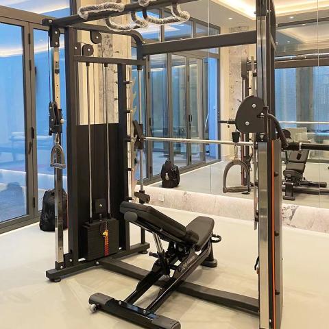 Enger Doppel Kabelzug höhenverstellbar und Multipresse geführt - 2 in 1 Kombigerät - Dual adjustable Cable Pulley and Smith Machine - 2x 100kg Gewichtsblöcke - Silber